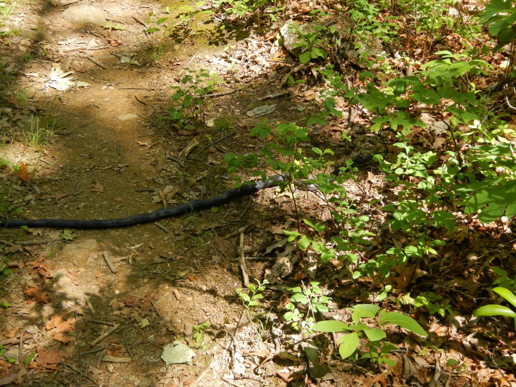 Continental Breakfast von 5 bis 9 Uhr? …. Naja, wir vertragen ja mittlerweile viel, aber Schlaf ist auch nicht zu verachten und von 7 bis 9 Uhr passen auch noch viele Waffeln, Müsli und Bagels in einen rein. Und da auf den nächsten 9 Meilen kein brauchbares Wasser zu finden sein sollte, ließen wir uns an der Tanke, in der Sonne sitzend, nochmal mit Cola volllaufen. Dadurch brachen wir mal wieder erst um 10 Uhr zu den geplanten 19 Meilen auf. Das Höhenprofil versprach keine bösen Überraschungen und bei diesem schönen Wetter machten wir etliche Pausen…. Der Zeichner des Höhenprofils hatte natürlich mal wieder einige nicht unerhebliche Erhebungen vergessen zu erwähnen und durch die vielen schönen Pausen wurde es mal wieder dämmrig, bis wir ankamen. Das Shelter war schon voll und die wenigen, irgendwie brauchbaren Zeltplätze auch schon belegt (und wir sind schon lange nicht mehr anspruchsvoll!). So holten wir nur Wasser, wobei wir eine Wasserschlange aufschreckten – oder sie uns? – und liefen mal wieder im Dunkeln weiter, bis sich am Wegesrand ein flaches Plätzchen fand.